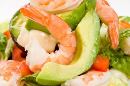 Avocat aux crevettes – Pour 4 personnes : 2 avocats, 2 oeufs, 1 tasse à thé de mayonnaise au citron, 200 g de crevettes…