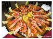 Entre-temps, faites revenir dans l’huile les poivrons blanchis et coupés en morceaux ainsi que des tranches de tomates, les fonds d’artichauts, les petits pois, le crabe dégelé, le jambon coupé en dés, les moules, les crevettes et les champignons.