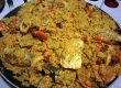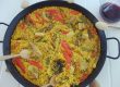 Sur un plat de service gardé au chaud, versez la paella et parsemez avec les dés de foie de veau.