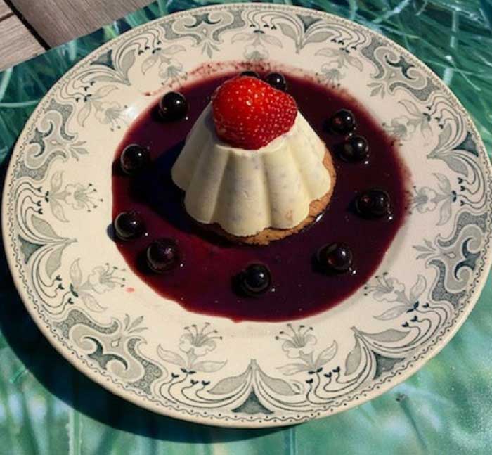 Servez sur assiette : déposez un sablé, démoulez par-dessus un parfait.