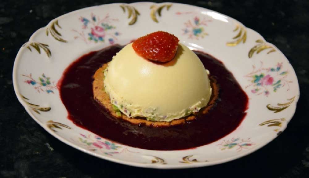 Saupoudrez largement des éclats de pistaches et mettez au congélateur.