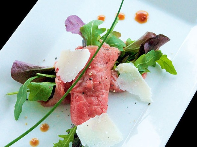 Dans de grandes assiettes préalablement placées au fais, disposez les tranches de viande et remettez au réfrigérateur jusqu’au moment de servir (2 h maximum).